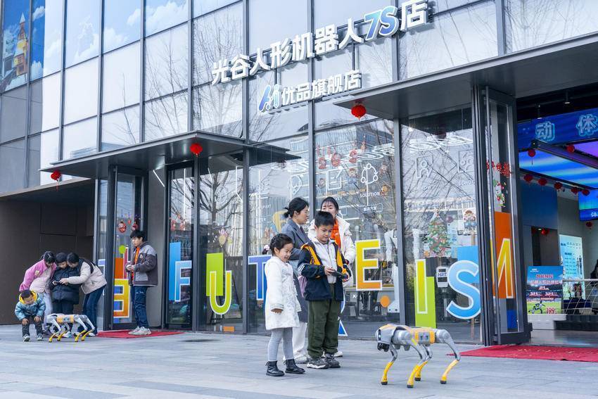 光谷人形机器人7S店推出的机器狗互动、机器人踢足球、体感操控机器人体验活动,吸引了不少小朋友尝鲜体验。(湖北日报全媒记者 魏铼 摄)