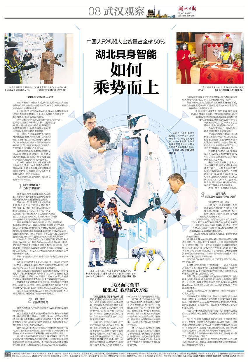 有业内人士分析,凭借光电子信息、汽车制造的双重优势,武汉可趁此势头,打造成为全球具身智能的重要策源地之一。